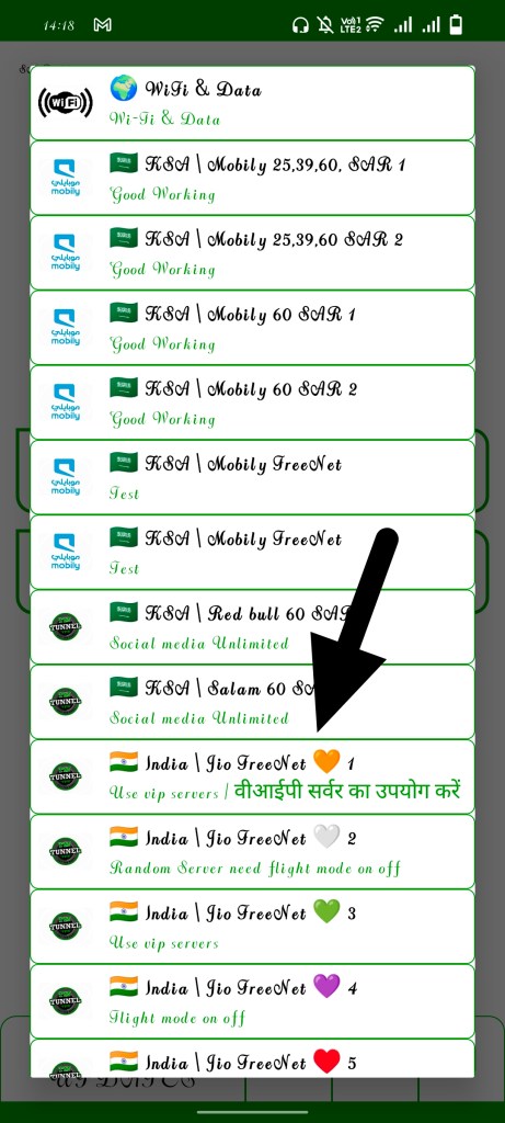 Now select any jio server out of seven or eight server and this will work for all sim which is being used in india